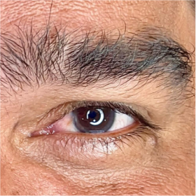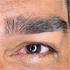 Limpeza e alinhamento natural dos fios, mantendo a expressão e masculinidade do olhar.